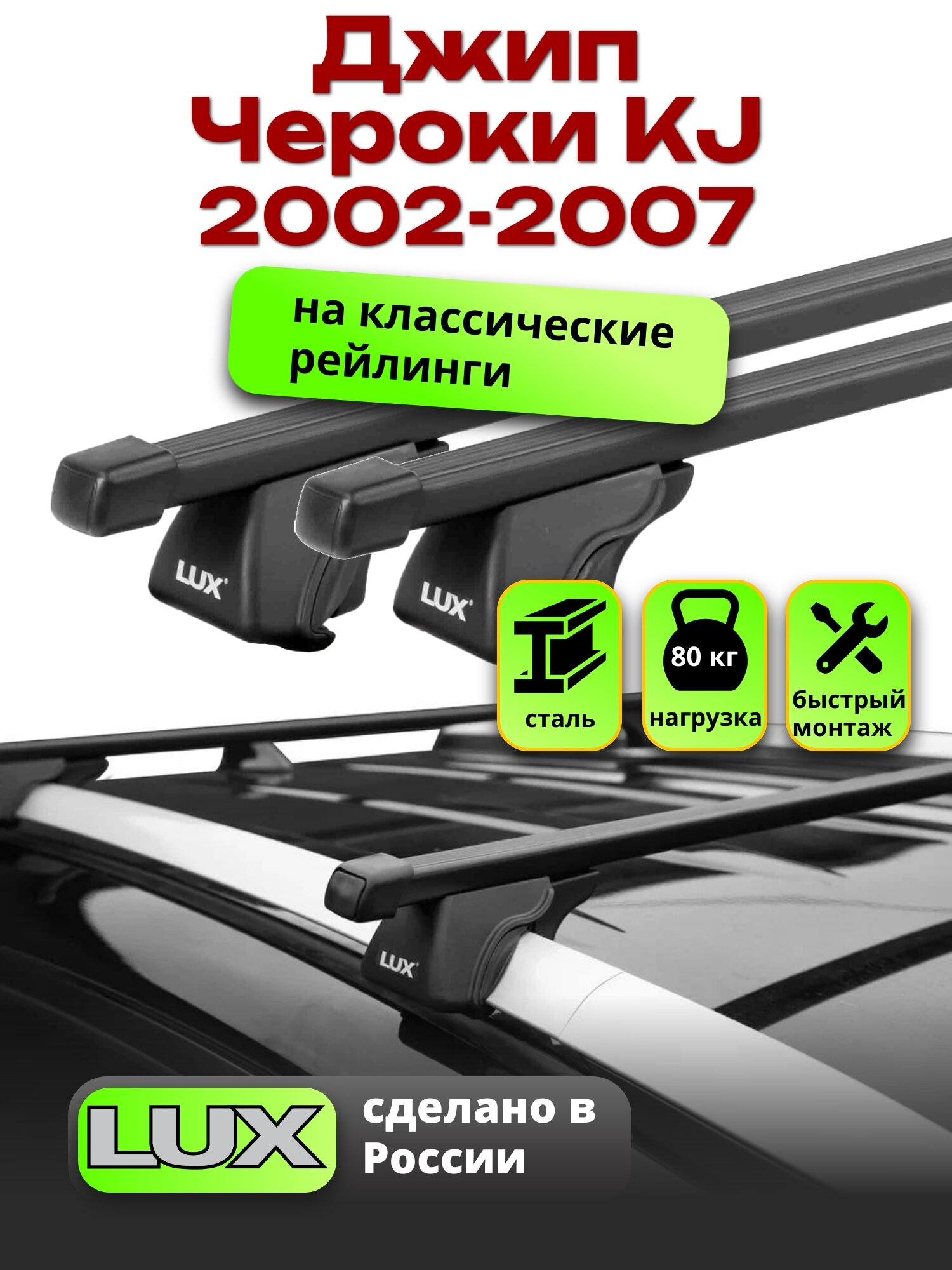 Багажник на крышу Джип Чероки KJ 2002-2007 на рейлинги, черный, LUX классик информация: