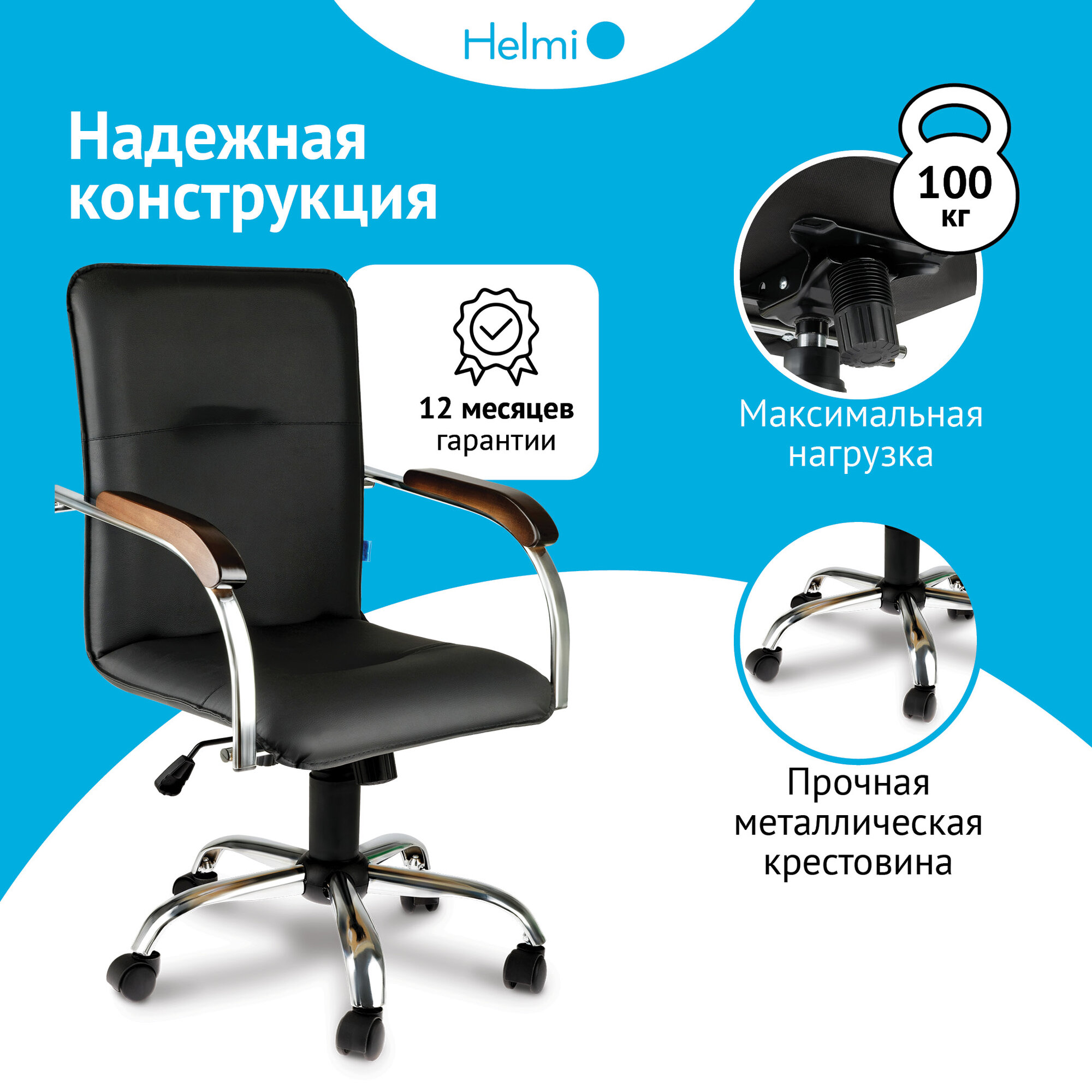10 цен на Офисное кресло/ компьютерное кресло Helmi HL-M23 "Самба G/Samba G", CH, экокожа, черный, орех, механизм качания