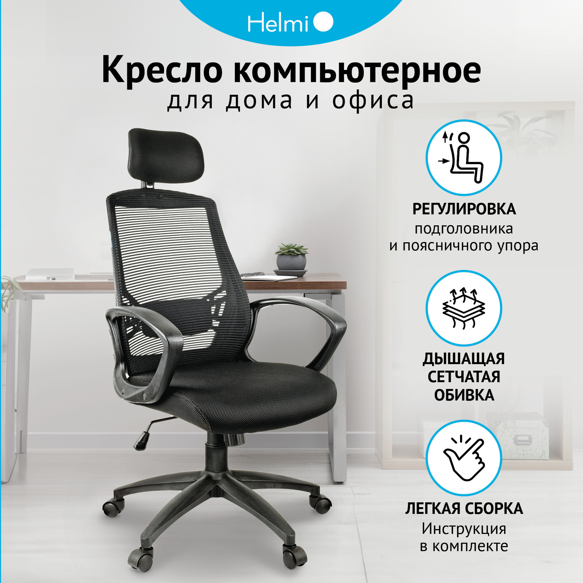 10 цен на Компьютерное кресло руководителя Helmi HL-E30 "Ergo"/Сиденье и спинка из черной ткани и сетки, с подлокотниками, на колесиках, регулируемый подголовник/Офисный компьютерный стул, мебель для дома