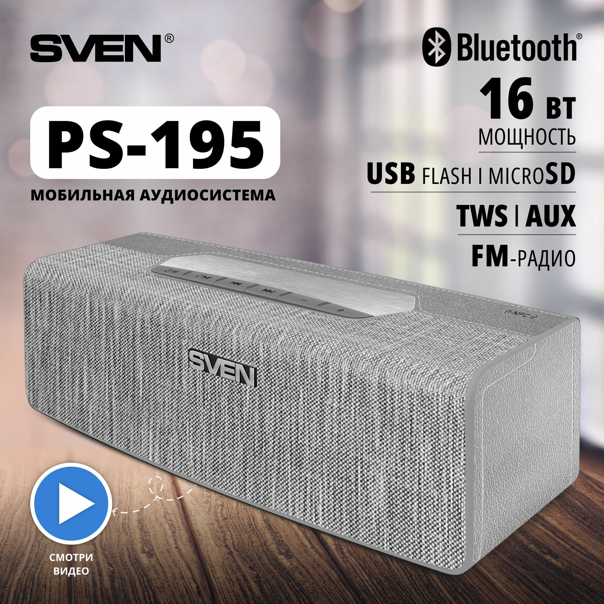 Беспроводная портативная колонка Sven PS-195 серый (SV-019952) информация: