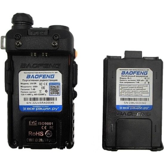 Радиостанция Baofeng двусторонней связи UV-5R L/M (1800 mah) информация: