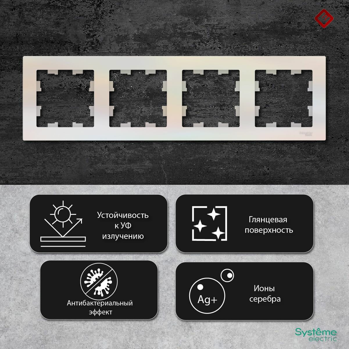 Рамка для розеток и выключателей четырехпостовая (Жемчуг), Schneider Electric AtlasDesign (комплект 3шт) информация: