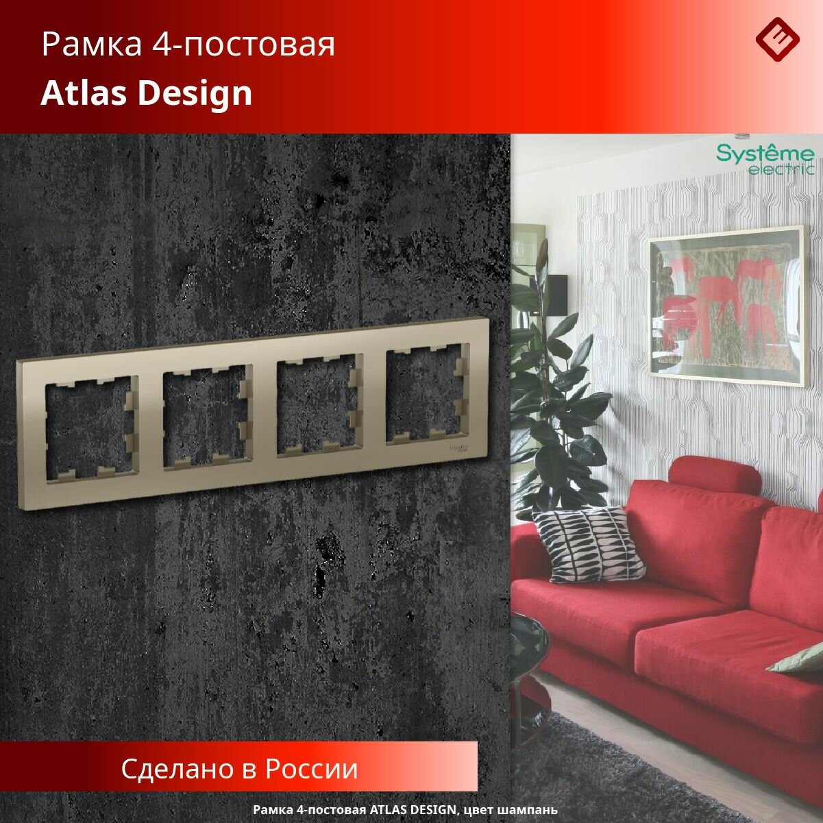 Отзывы на Рамка для розеток и выключателей четырехпостовая (Шампань), Schneider Electric AtlasDesign (комплект 2шт)