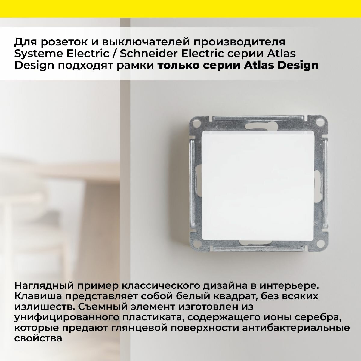 Переключатель одноклавишный белый, сх.6, 10АХ, механизм Schneider Electric AtlasDesign информация: