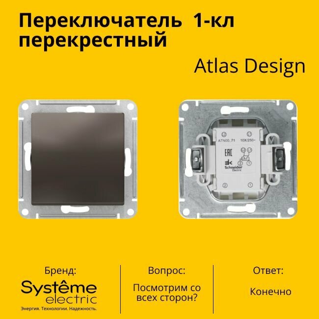 10 цен на Переключатель перекрестный Systeme Electric Atlas Design 1-клавишный, 10А, 10 AX, Мокко - 2 шт