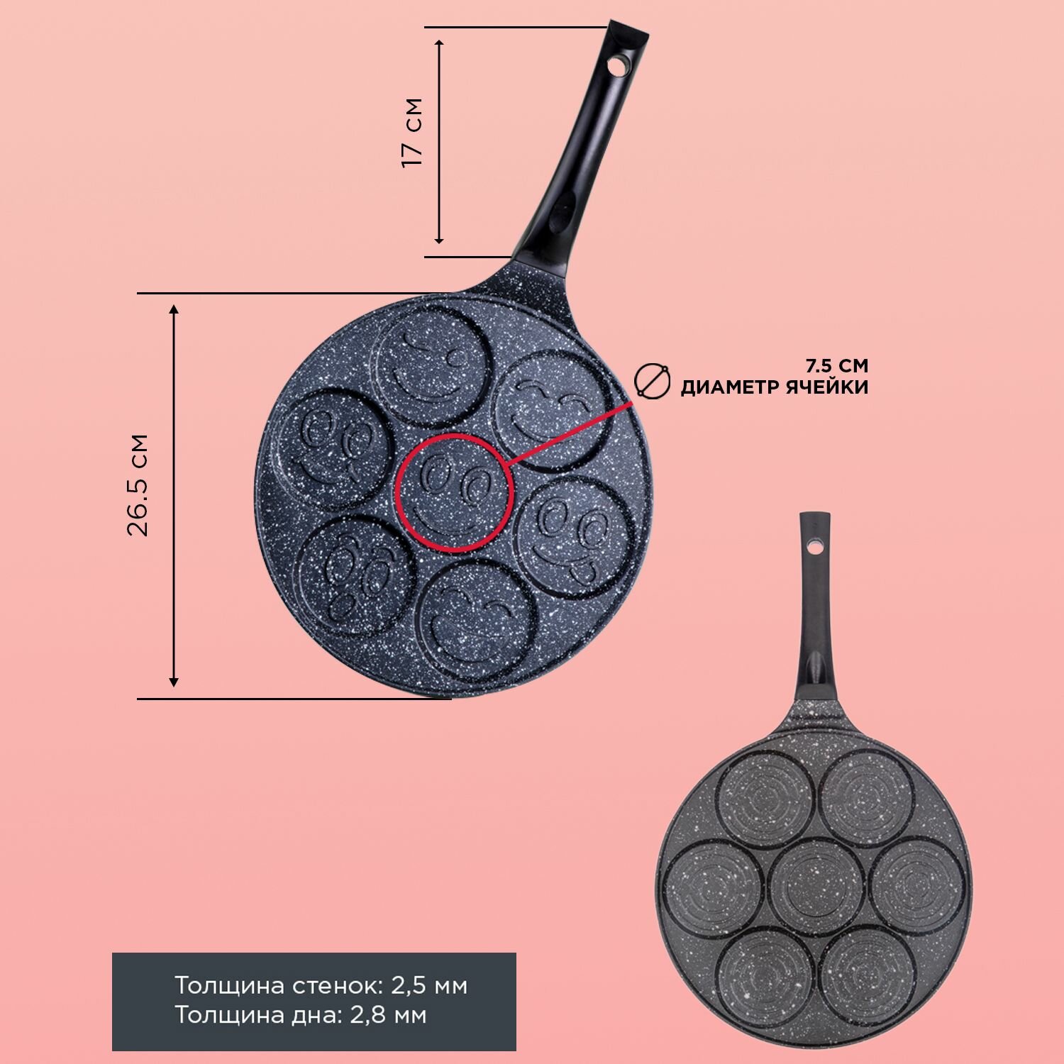 Сковорода блинная Agness "Смайл", для оладий, с антипригарным мраморным покрытием, диаметр 26.5 см, индукционное дно