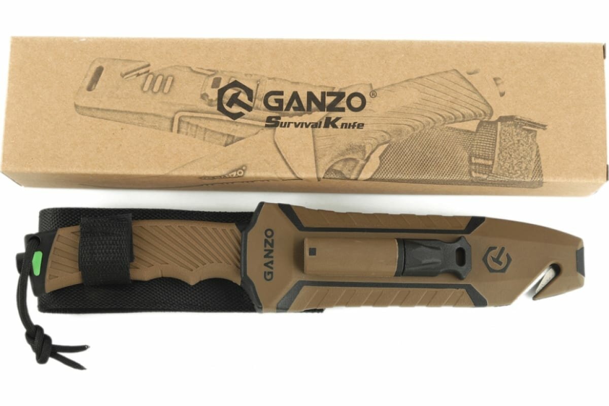 Отзывы на Нож туристический GANZO, длина 243 мм, сталь 8CR13, коричневый, с паракордом, в ножнах