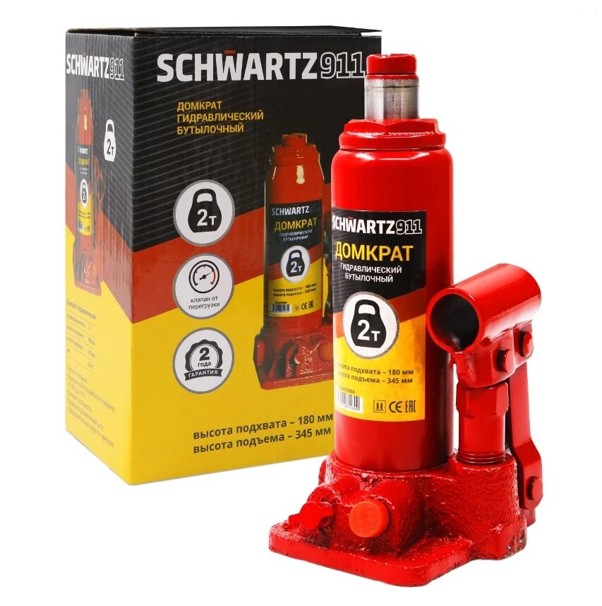 Домкрат автомобильный бутылочный Schwartz-911 2 т180-345 мм), карт. кор.
