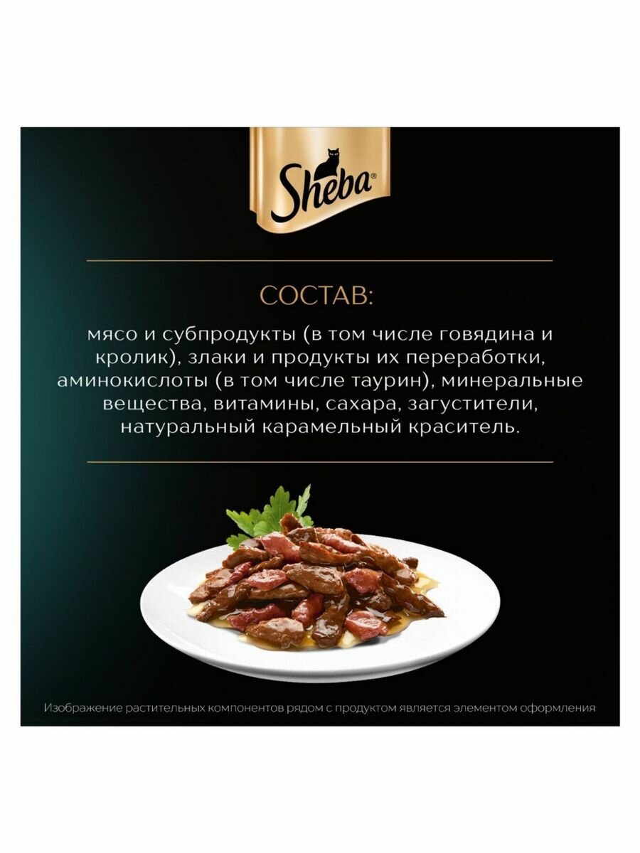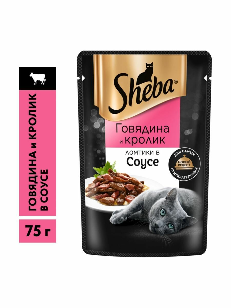 Корм влажный для кошек Шеба,"Sheba" Говядина и Кролик в соусе, 75гр.*10 шт. информация: