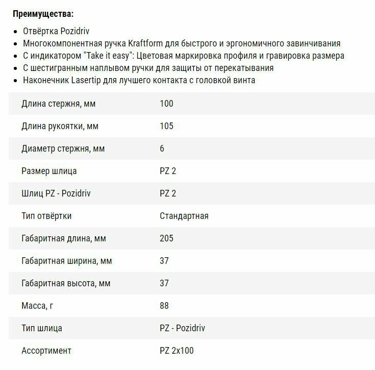 Отвёртка крестовая Wera, PZ 2x100 мм, WE-009315 информация: