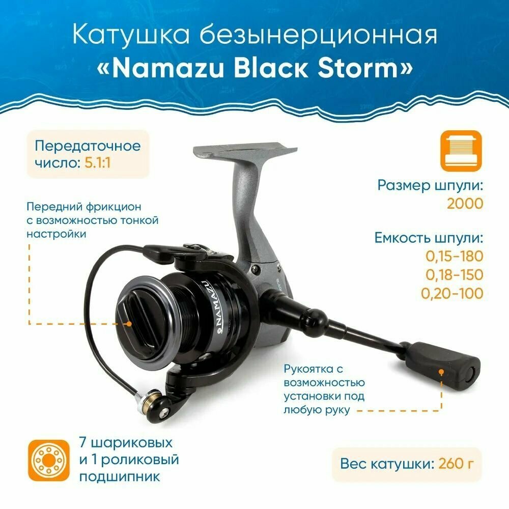 Namazu Катушка б/ин Namazu Black Storm BST2000, 7+1 подшипник, 5.1:1, металлическая шпуля + запасная графитовая