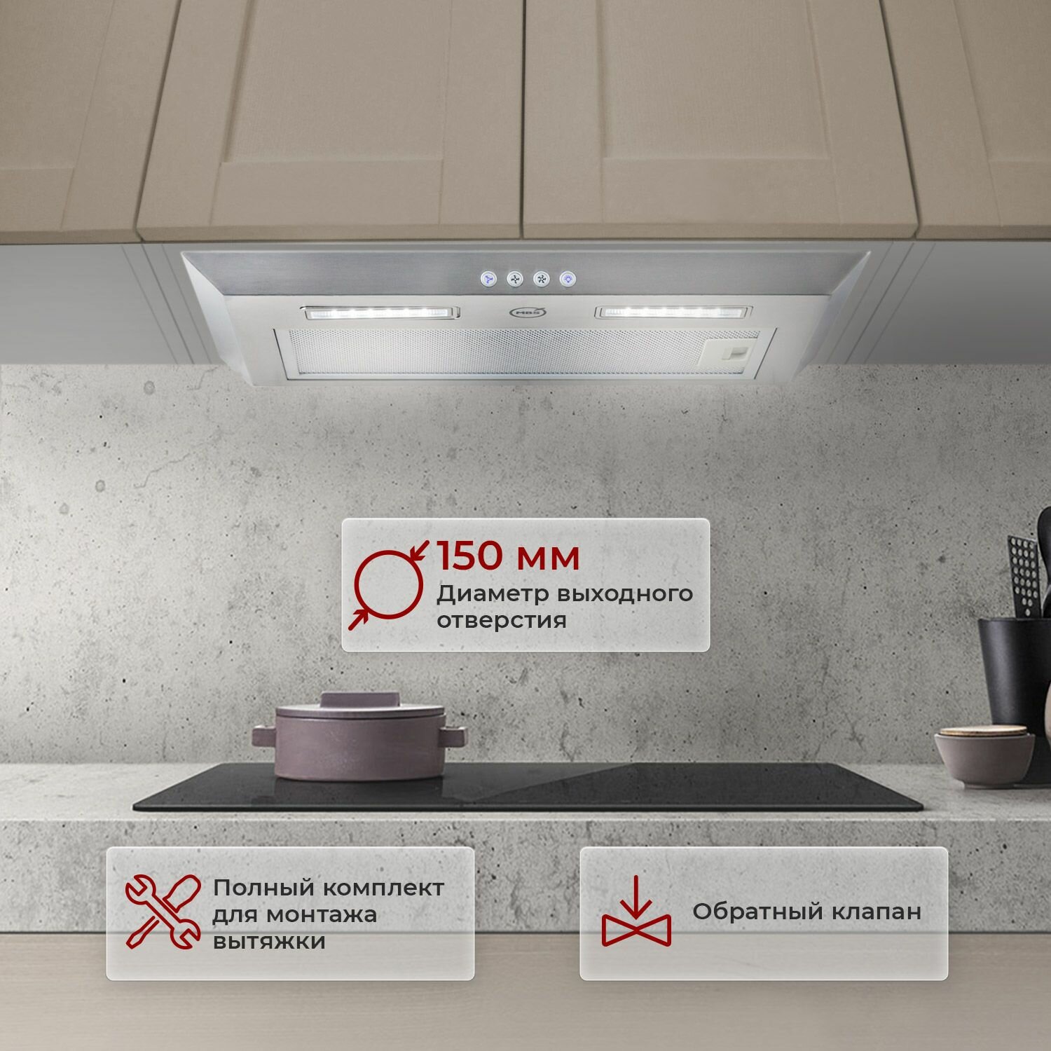 Отзывы на Кухонная вытяжка встраиваемая MBS LOBIVIA 160 INOX/60 см/производительность 1030м3/ч, низкий уровень шума.