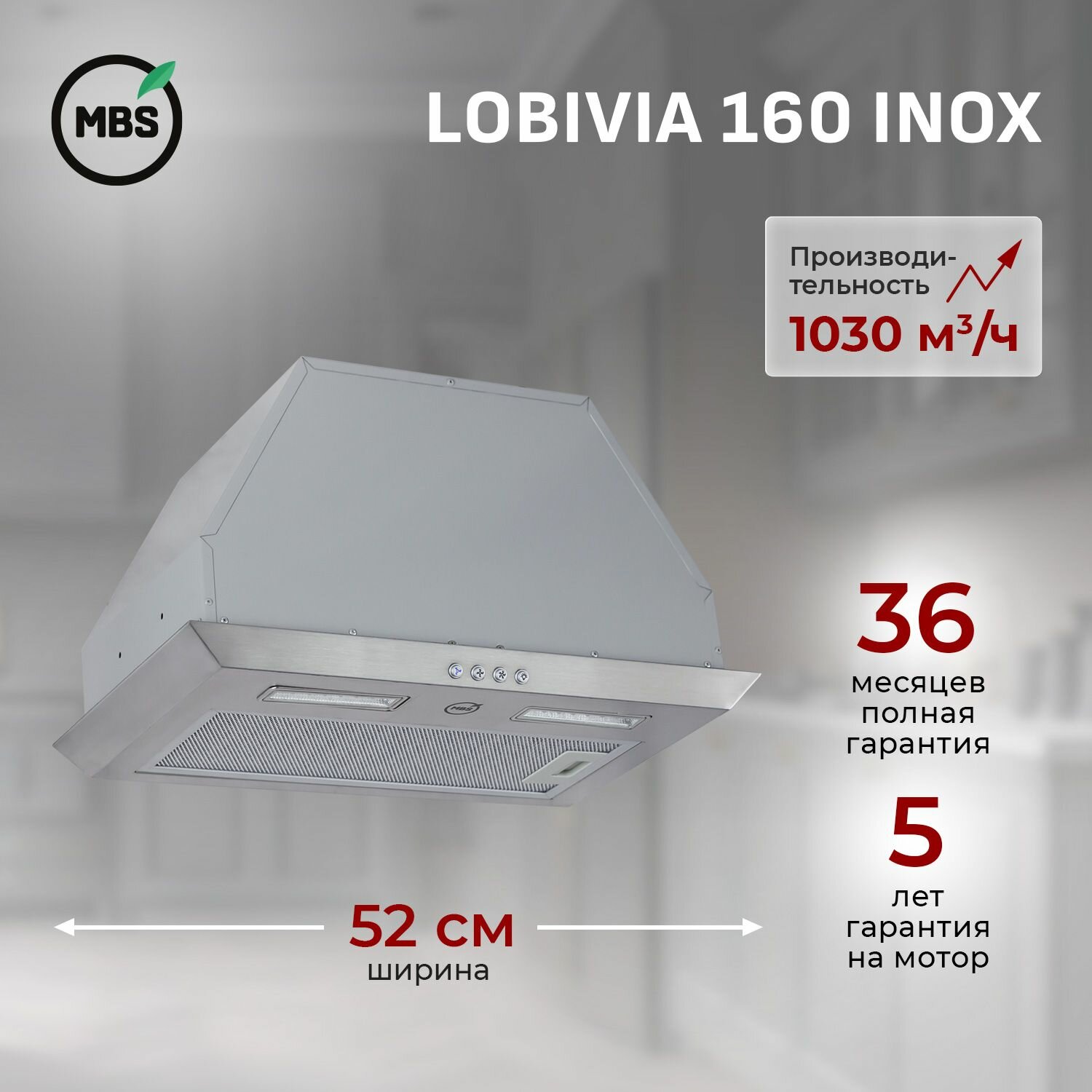 Кухонная вытяжка встраиваемая MBS LOBIVIA 160 INOX/60 см/производительность 1030м3/ч, низкий уровень шума. информация: