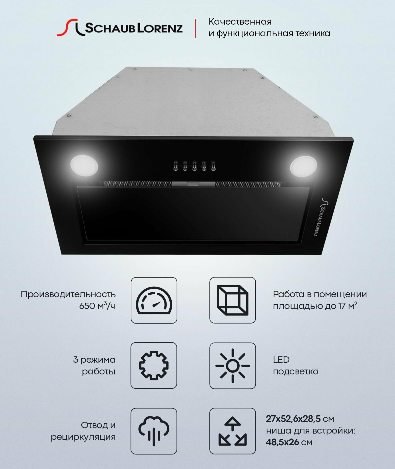 Вытяжка для кухни встраиваемая 50 см Schaub Lorenz SLD EY5004, закаленное стекло