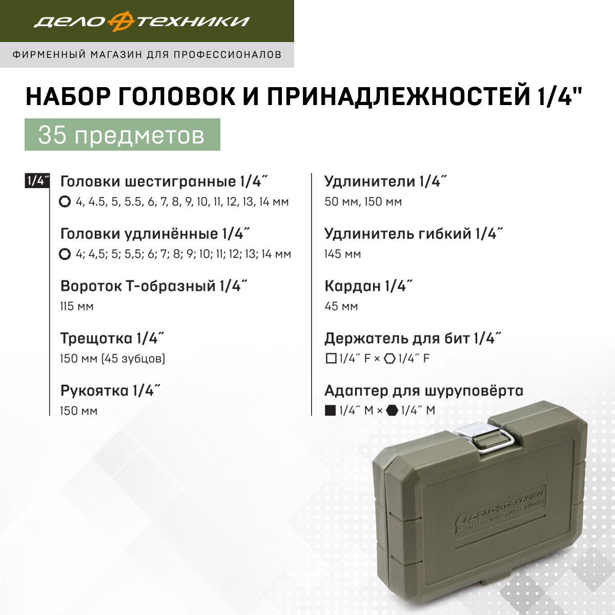 10 цен на Набор головок и принадлежностей 1/4", 35 предм., Дело Техники, 600735