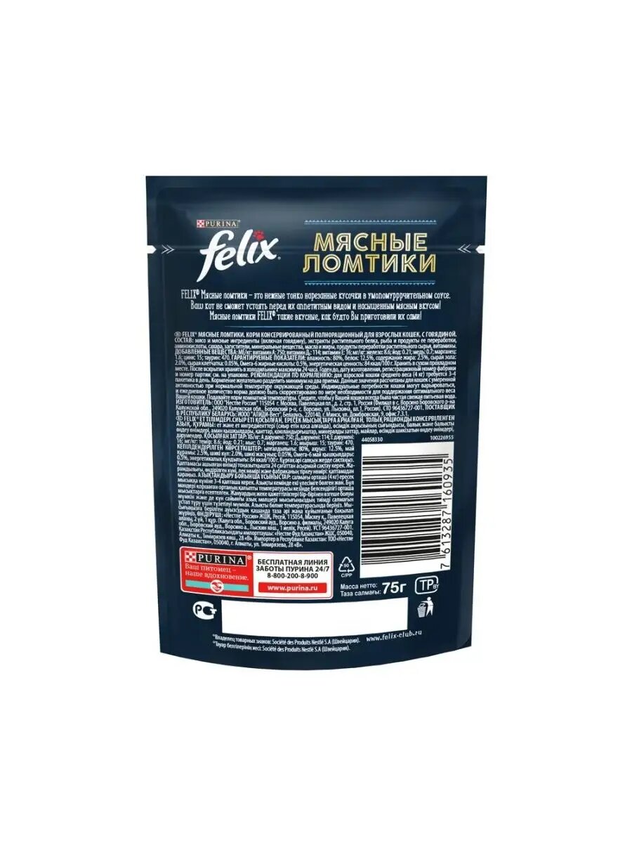 Корм для кошек влажный говядина в соусе, 26 штук по 75 г информация:
