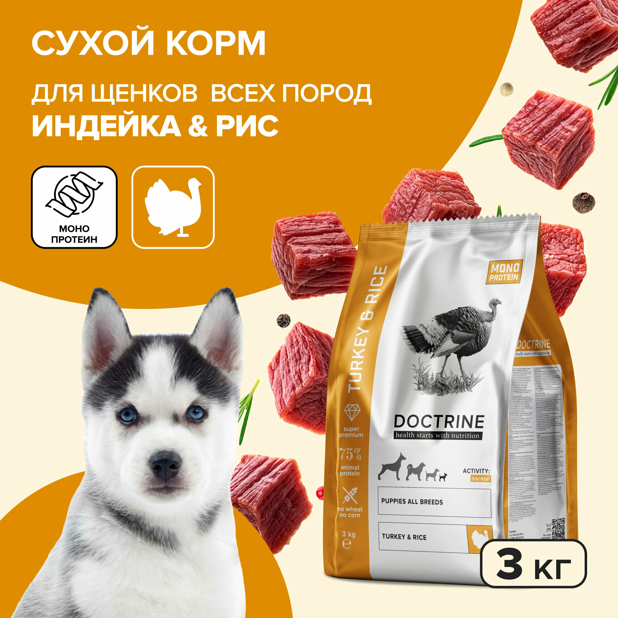 DOCTRINE сухой корм для щенков всех пород с индейкой и рисом 3кг информация: