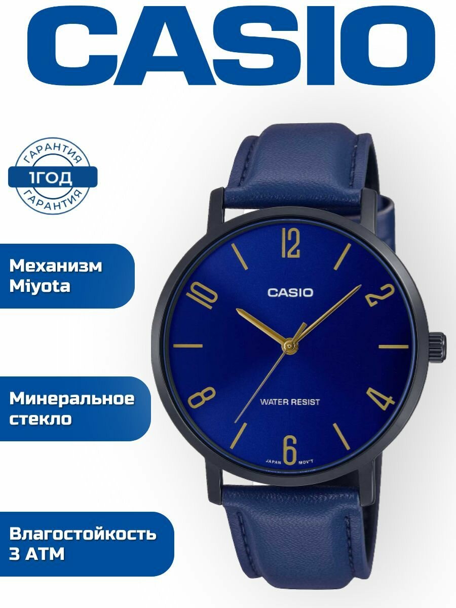 MTP-VT01BL-2B Casio наручные часы кварцевые WR30 (3 атм) мужские черный, синий минеральное стекло