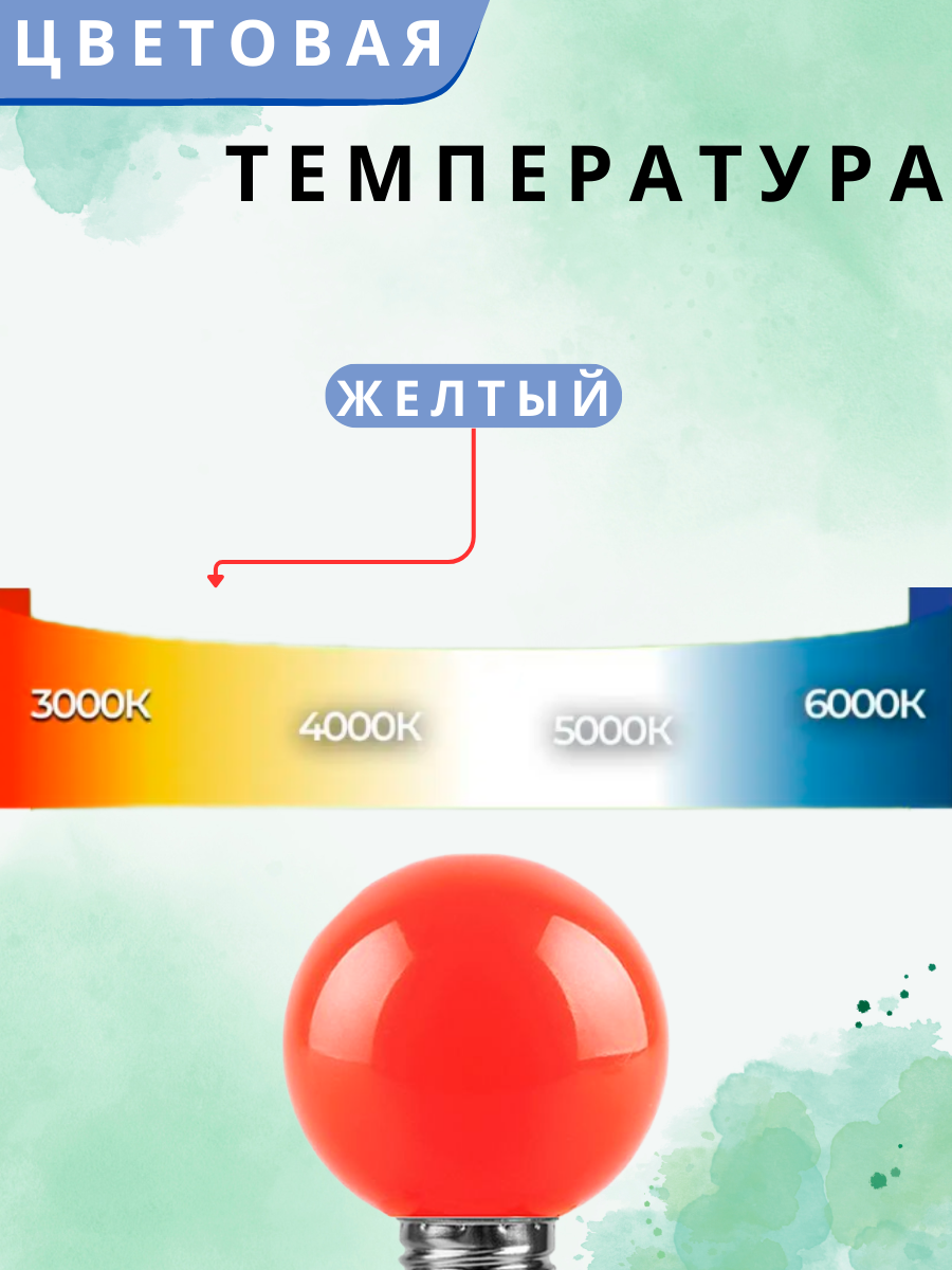 Лампочка светодиодная шар E27/G60 3Вт красный, 25905