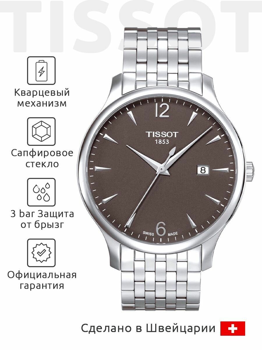 Швейцарские кварцевые часы Tissot Tradition T063.610.11.067.00 на стальном браслете, с водозащитой 3 бара и международной гарантией от производителя 53 100 ₽