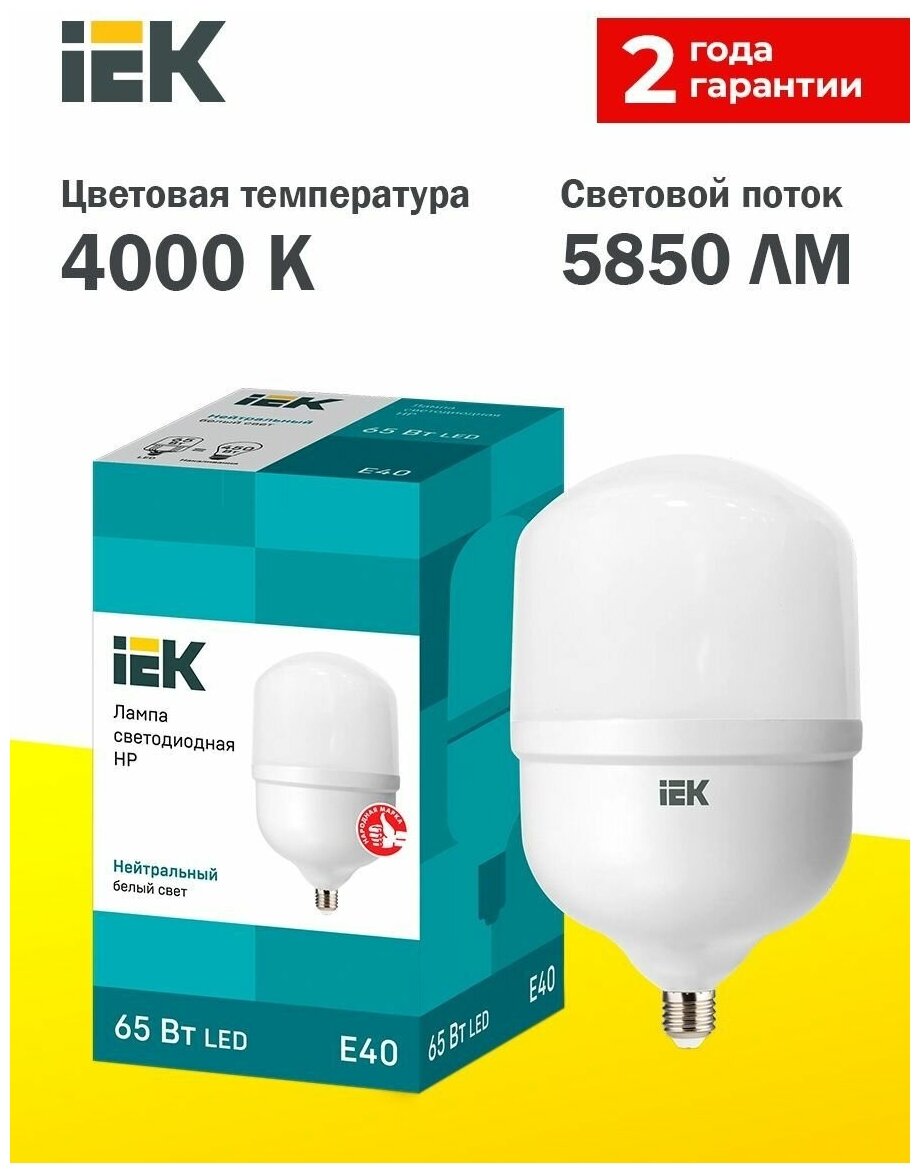 Лампочка IEK светодиодная HP 65Вт 230В 4000К E40 информация: