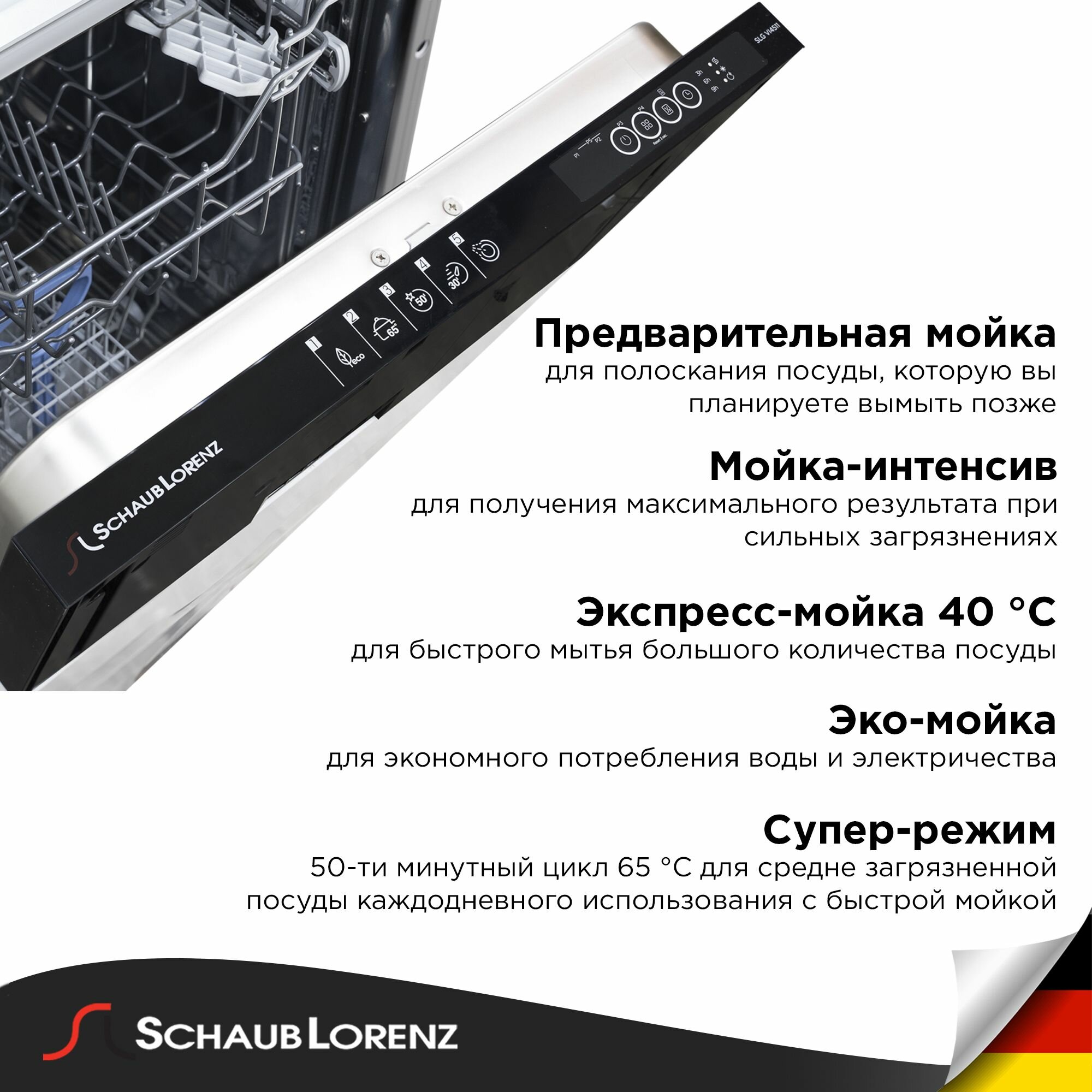 Посудомоечная машина Schaub Lorenz SLG VI4511, встраиваемая, турбо-сушка, 10 комплектов посуды информация: