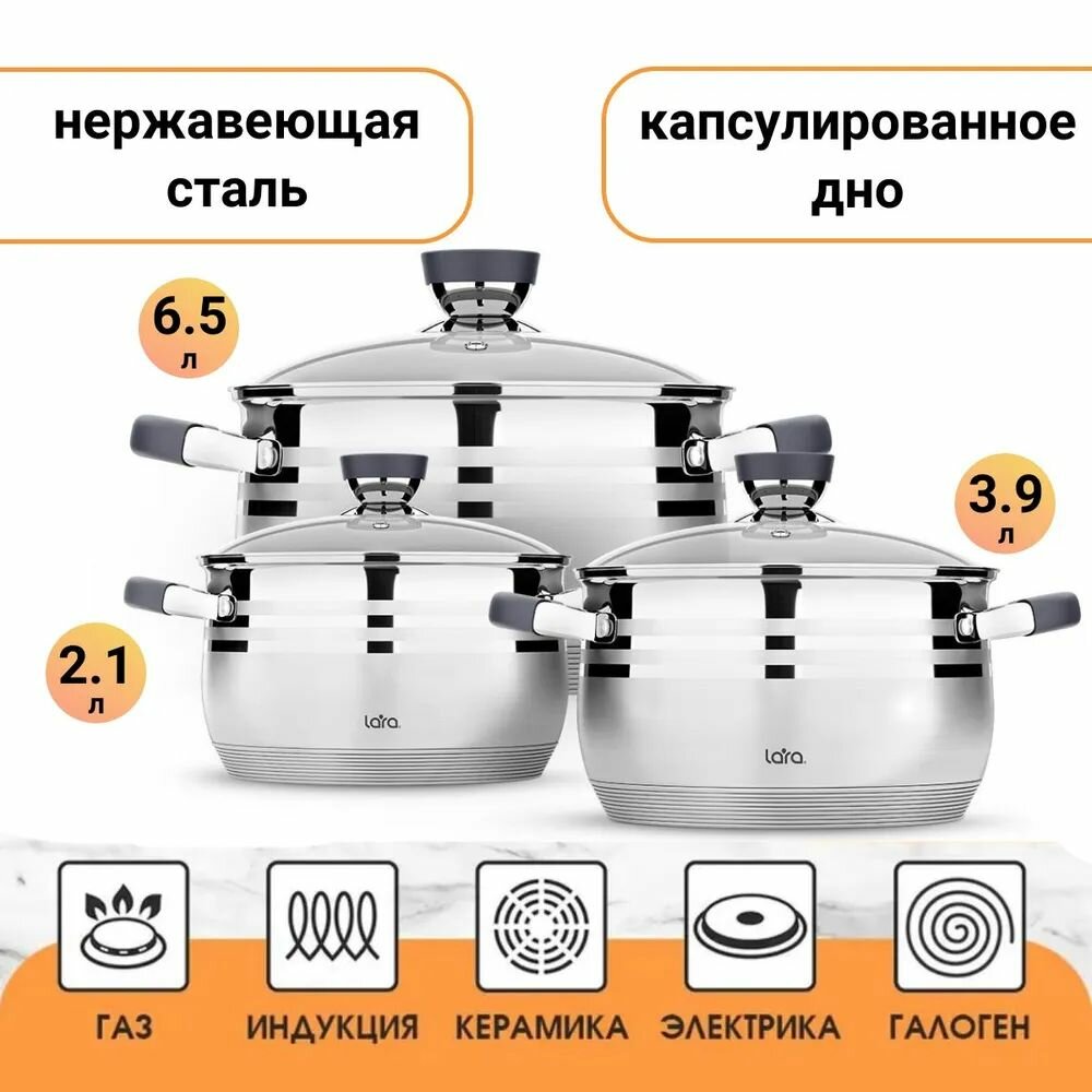 Набор кастрюль LARA LR02-120 MERCURY, 6 пр. информация: