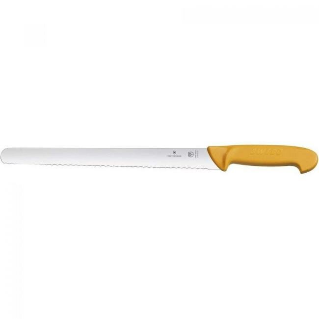 Отзывы на Нож кухонный Victorinox Swibo, для нарезки ломтиками, 250мм, заточка серрейтор, стальной, оранжевый