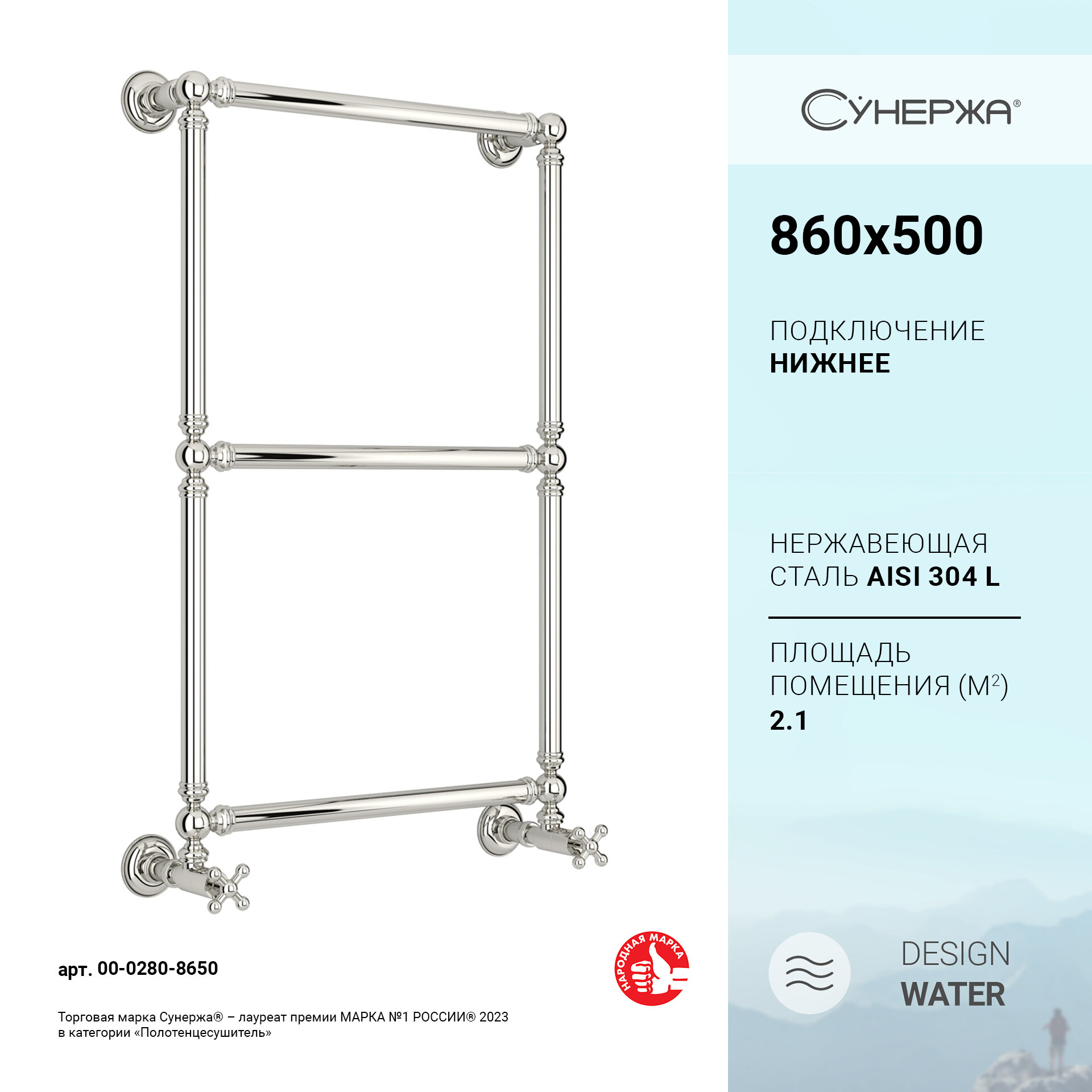 Водяной полотенцесушитель Сунержа Ренессанс 1304 860x500 арт. 00-0280-8650
