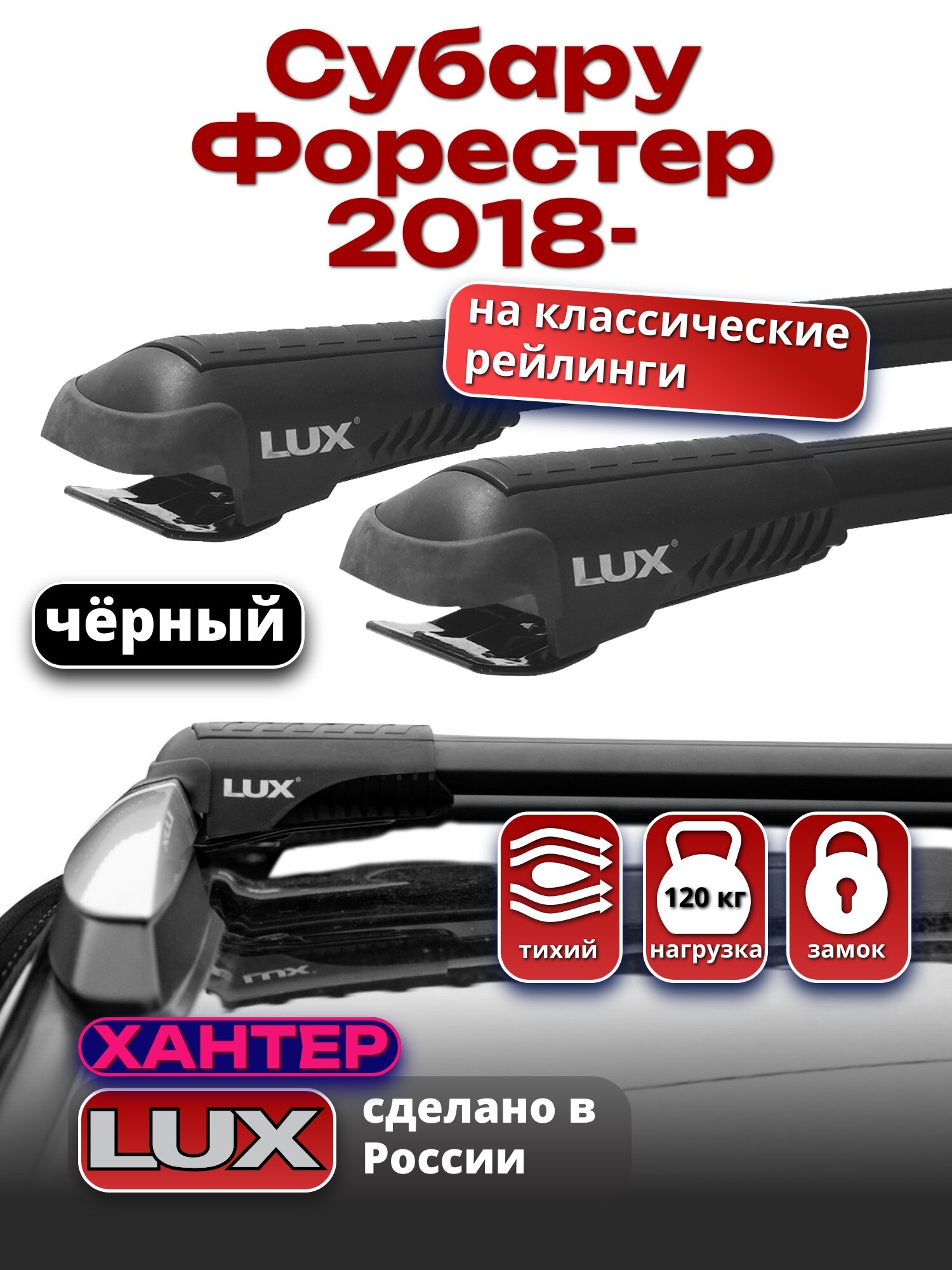 Багажник на крышу Субару Форестер 2018-2024 на рейлинги, черный, LUX хантер информация: