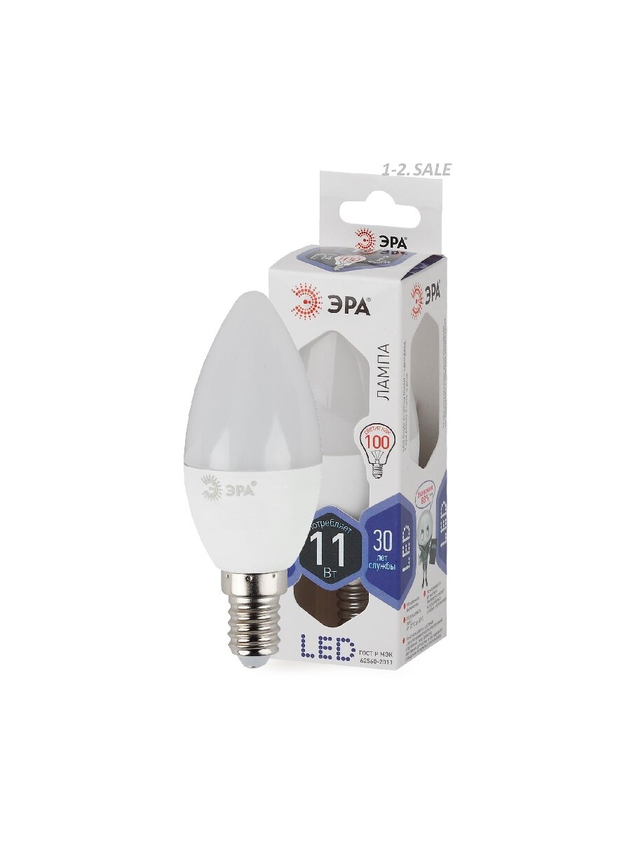 Отзывы на (15 шт.) Светодиодная лампочка ЭРА стандарт свеча B35 E14 11W(880lm) 6000K 6K 110x35 2424 Холодный белый. Цоколь E14