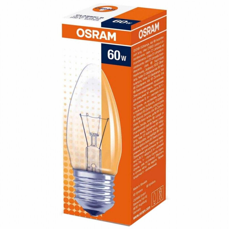 Лампа накаливания OSRAM Classic CL, E27, B35, 60 Вт, 2700 К
