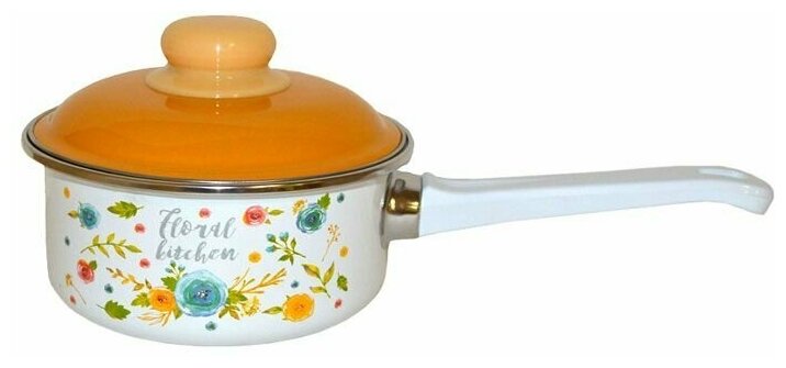 Кастрюля эмалированная 1,5 л с ободком белая с рисунком Фруктовая фантазия
