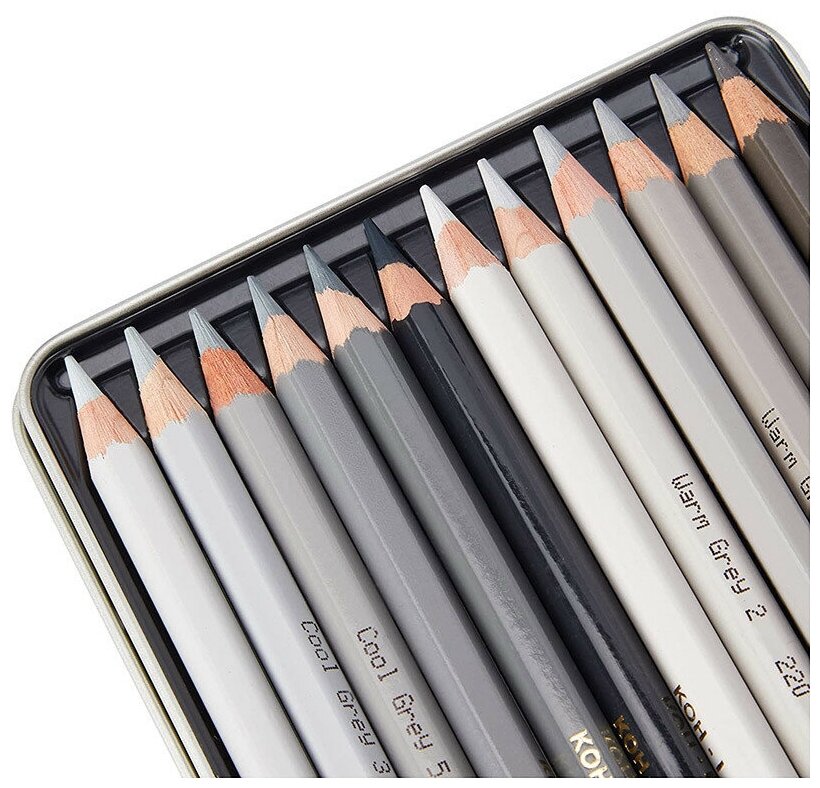 Koh-I-Noor Карандаши 12 цв Koh-i-Noor POLYCOLOR 3822, GRAY LINE, мет/пенал в блистере