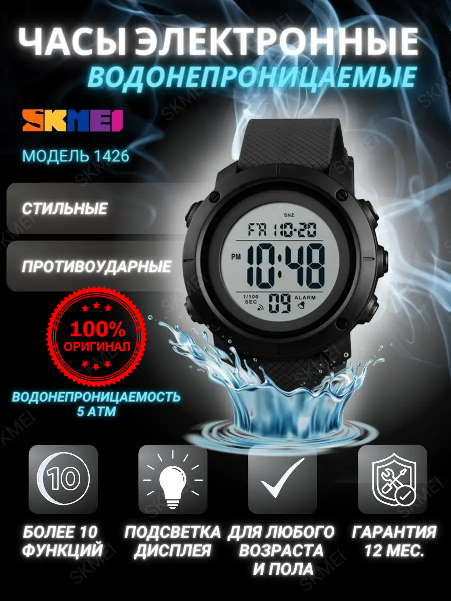 10 цен на Часы мужские SKMEI 1426, водонепроницаемые, черные. Экран светлый.