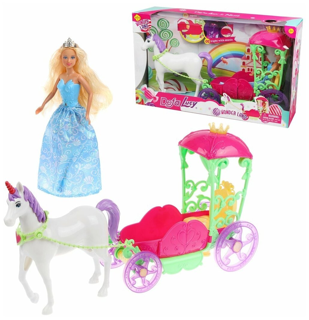 Принцесса 29 см с каретой (свет,звук) и лошадкой-единорогом информация: