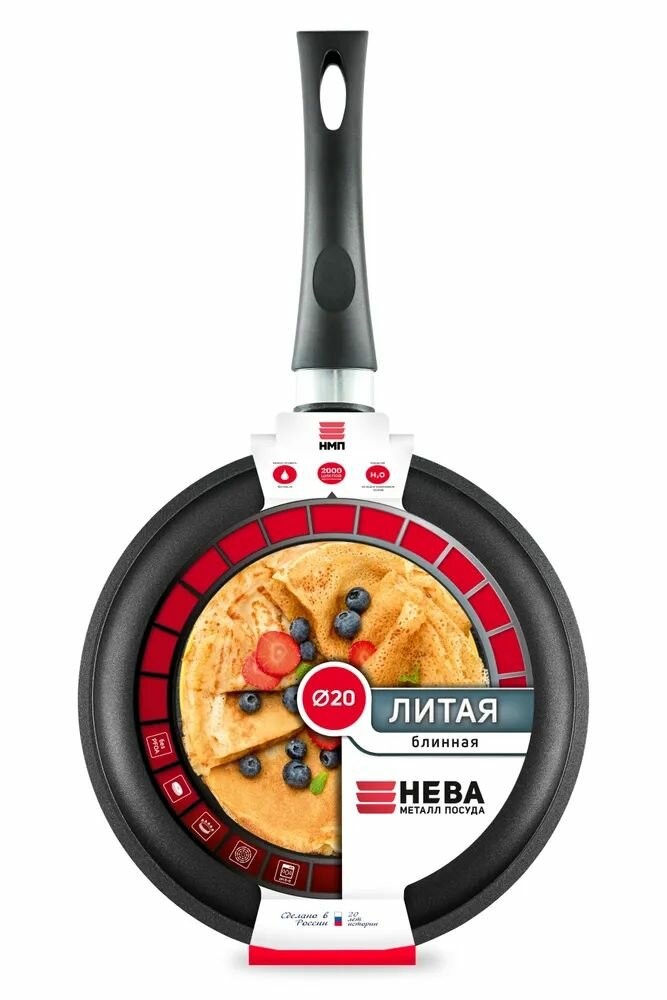 Сковорода для блинов 20 см Нева Металл Посуда "Литая", с антипригарным покрытием, литая, блинная, алюминиевая информация: