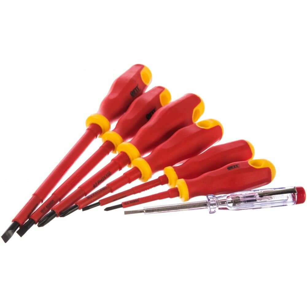 10 цен на Отвертки изолированные 1000 В, CrV сталь, прорезин. ручки, в нейлоновом конверте, 6 шт+ 1 индикаторная