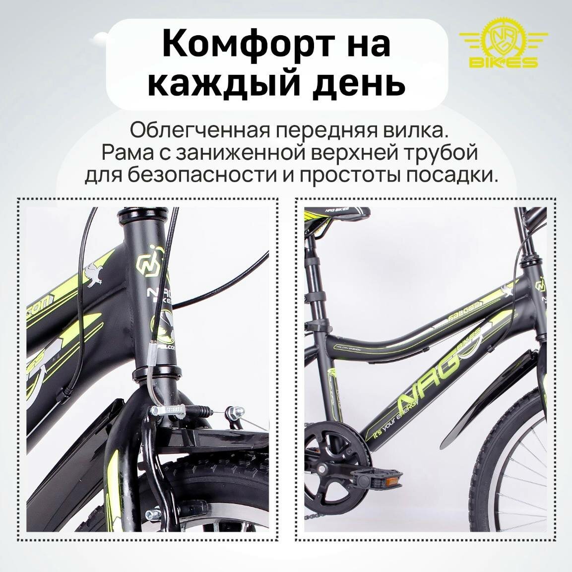 Отзывы на Велосипед скоростной подростковый дорожный NRG Bikes FALCON 20", черный, желтый