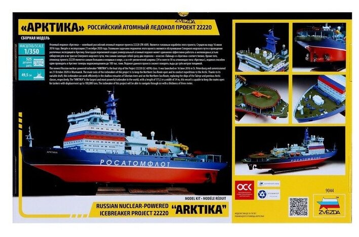 Сборная модель ZVEZDA Российский атомный ледокол проект 22220 "Арктика", 1/350 информация: