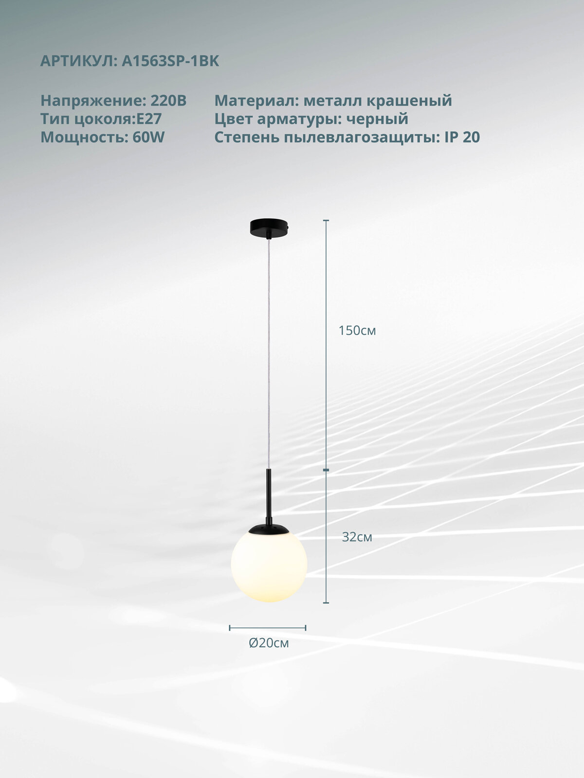 Подвесной светильник Arte Lamp VOLARE A1563SP-1BK / E27 / 1х8Вт / IP20 / чёрный информация: