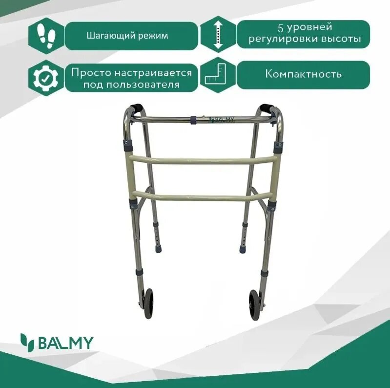 Ходунки шагающие BALMY 101 с колесами, с одноуровневым поручнем, складные, алюминий сплав, для пожилых людей, инвалидов информация: