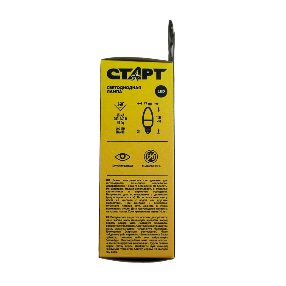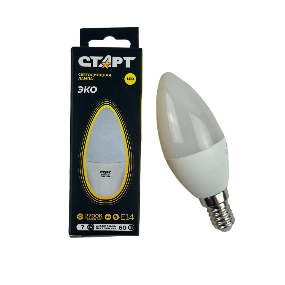 Светодиодная лампа Старт Эко, свеча, 7Вт, E14, 2700К информация: