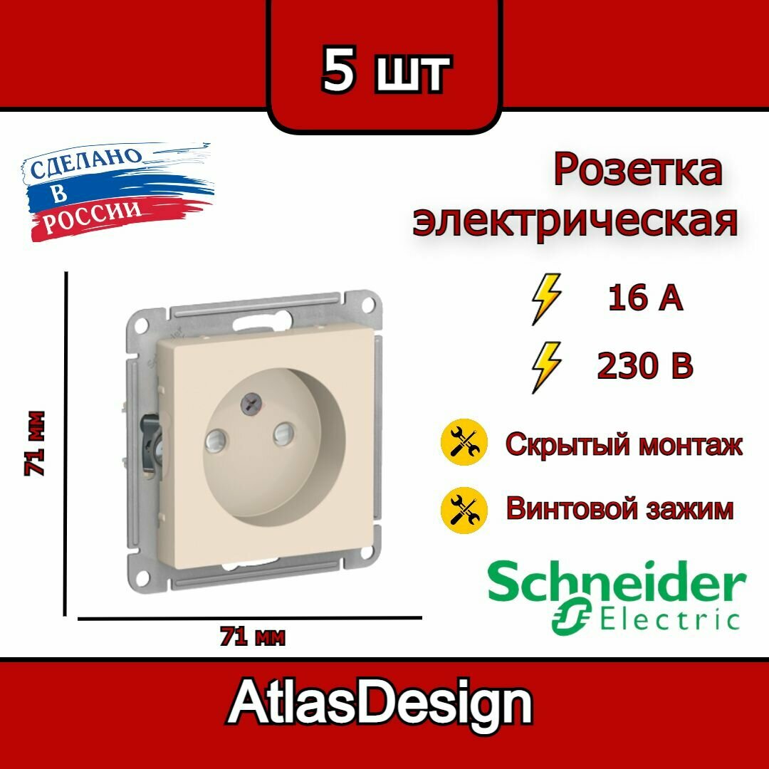 Розетка без заземления, со шторками, бежевая Schneider Electric AtlasDesign (комплект 5шт) информация: