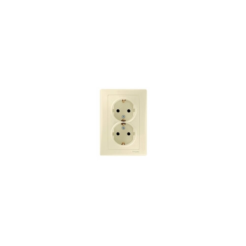 Розетка двухместная Schneider Electric SEDNA, скрытый монтаж, с заземлением, со шторками, бежевый, SDN3000747