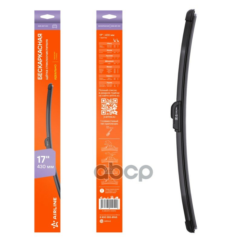 Отзывы на Щетка Стеклоочистителя 430Мм (17) Бескаркасная, 1 Адаптер(Крючок 9Х3) (Awb-Bkp-430) AIRLINE арт. AWBBKP430