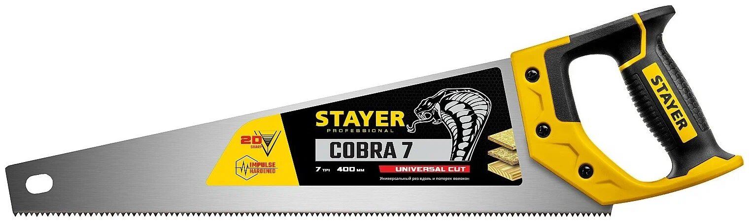 Ножовка универсальная (пила) COBRA BLACK STAYER 7 TPI, 500 мм, Professional