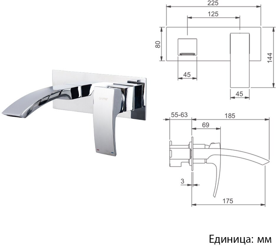 Смеситель для раковины Gappo G1007-2 встраиваемый, хром информация: