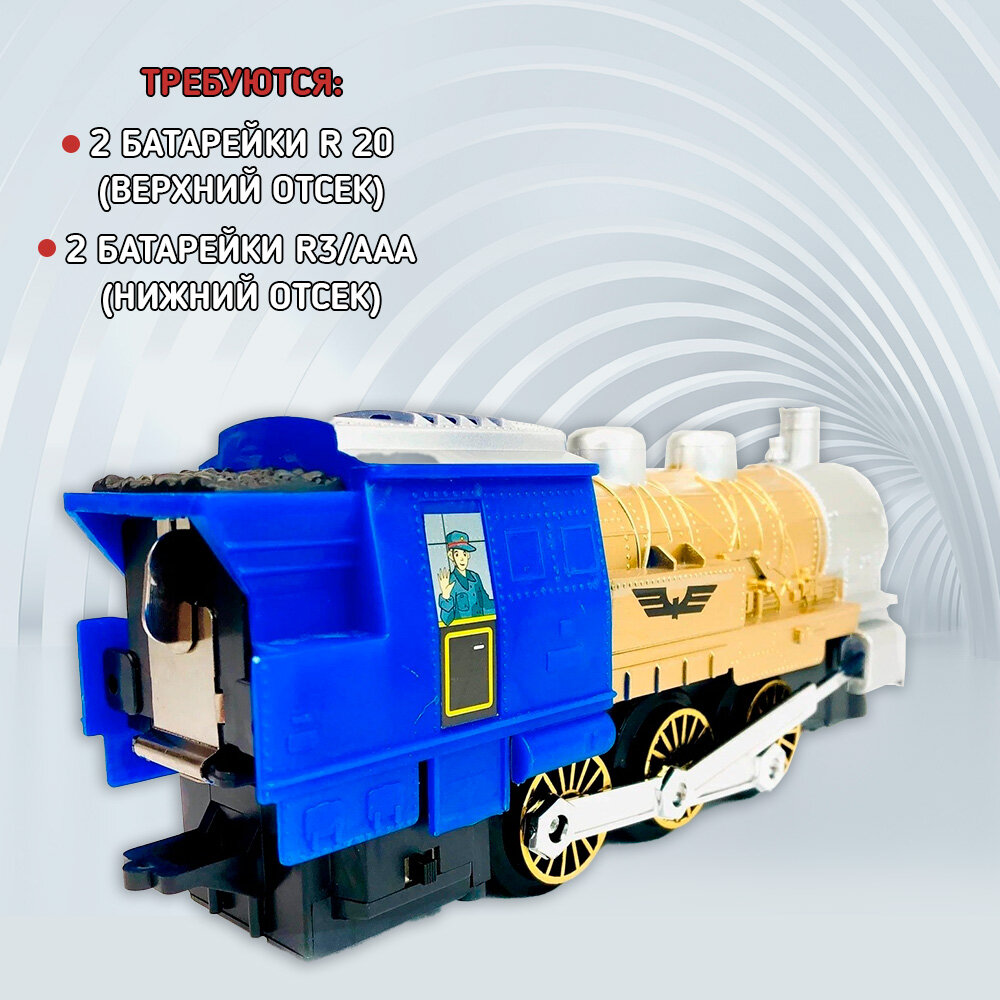 Детская железная дорога Galloy Smart, 13 элементов, размер дороги 103х78 см, металлические поезд и 2 вагона с углем, дым, свет, музыка, 34х28х7 см