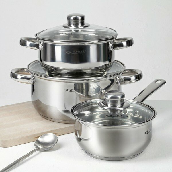 10 цен на Набор кастрюль из нержавеющей стали Гретта, 3 предмета: кастрюли 2,2 л, 4,2 л, ковш 1,6 л, капсуль .